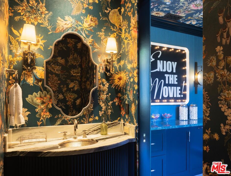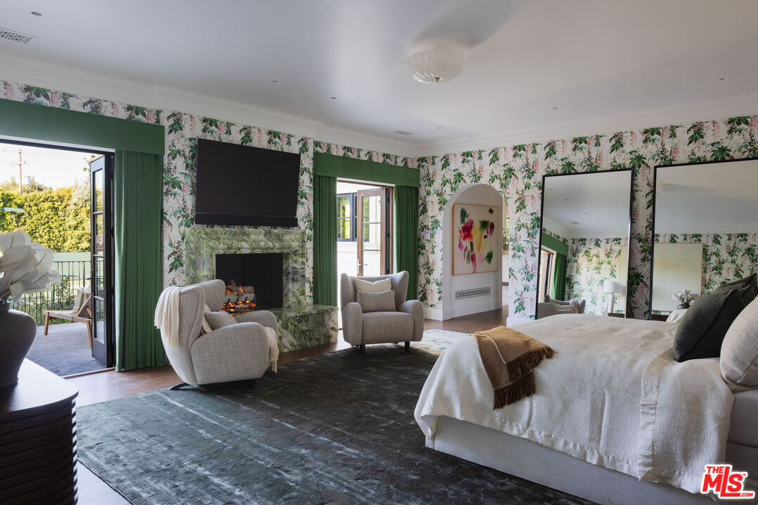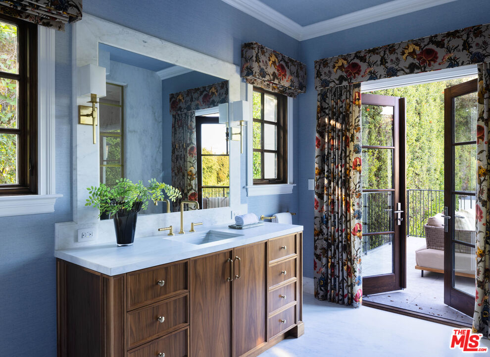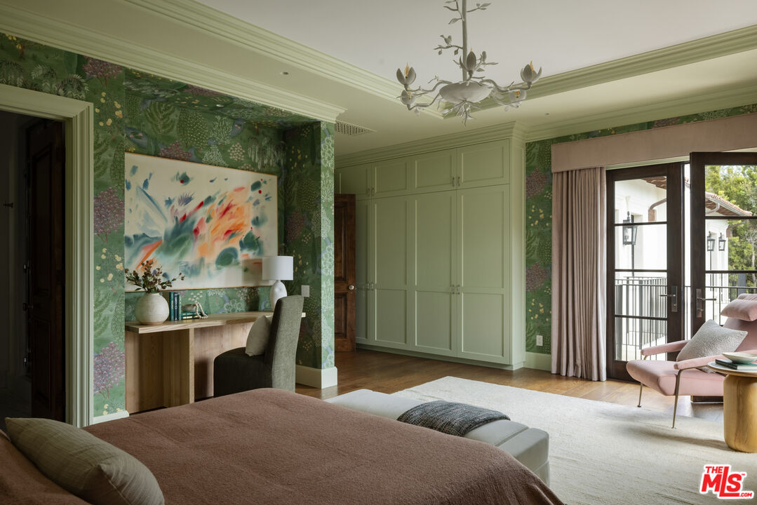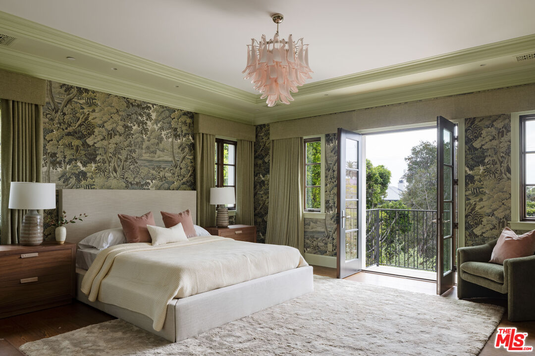 Behind the gates of a private cobblestone motor court in the heart of Brentwood Park stands The House of Hanover. Timeless European architecture reimagined through a contemporary lens this is the result of a three-year collaboration between AY Architects, Rattigan Construction, and Coppel Design. Spanning nearly 12,000 square feet entirely above grade, the residence reflects uncompromising craftsmanship at every turn. Dramatic ceiling heights and voluminous interiors unfold through a sequence of elegant spaces framed by arched passages, wide-plank wood floors, and black steel windows and doors accented with Nanz New York hardware. The Italian chef's kitchen crafted by Officine Gullo Firenze is a statement in precision and beauty, showcasing hand-finished stainless steel cabinetry, an eight-burner range, and Gaggenau dual ovens and refrigeration. Formal and informal living rooms, a pub lounge, game room, library and dining salon together create a seamless flow ideal for both grand entertaining and intimate living. Upstairs, five generous en suite bedrooms reveal an artful interplay of pattern and stone, featuring House of Hackney wall coverings and exquisite natural marbles. The primary suite is a private sanctuary with dual baths clad in Norwegian Rose marble and custom walk-in dressing rooms, each designed with couture-level detail. Beyond the main residence, the grounds evoke a private resort with a resort-sized pool with Badu swim jet, north-south tennis court and a spectacular entertainer's pavilion complete with raised-beam ceilings and a full bar overlooking the tennis court. Additional amenities include a detached professional gym, state-of-the-art theater, pool changing room with outdoor shower, full outdoor kitchen with bbq and pizza oven and a three-car garage with built-in storage. Throughout, every fixture and finish tells a story of connoisseurship: lighting by Paul Ferrante, Mechini, I Borbone and Murano chandeliers, plumbing by Sherle Wagner and THG, Crestron home automation, solar system and a backup generator for seamless comfort and effortless lifestyle. The House of Hanover represents the rarest form of Los Angeles luxury, a one-of-one estate of timeless character and contemporary grace.